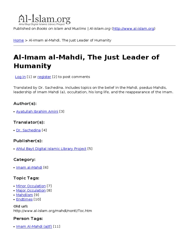 Al Imam Al Mahdi The Just Leader Of Humanity Muhammad Hadith